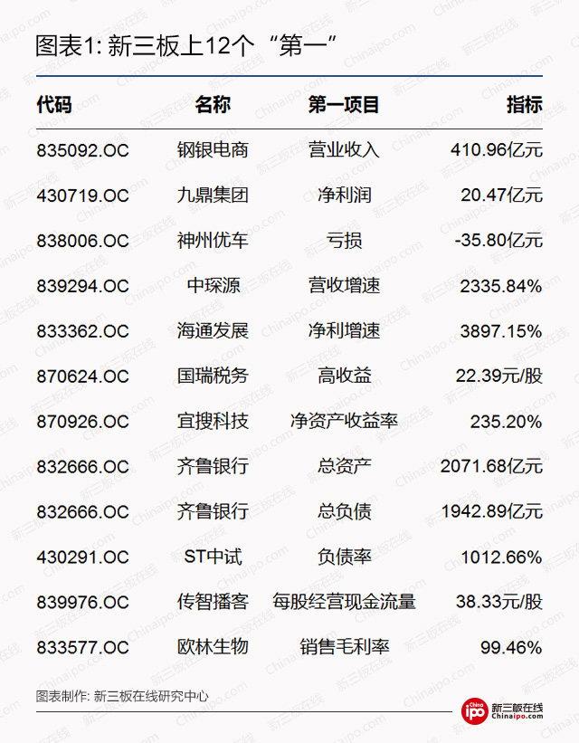 盘点新三板12个“第一”:谁是净利之冠,哪个行业最“赔钱”?