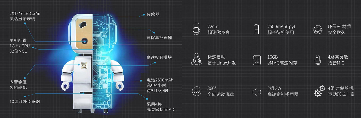 其中,首款产品张小盒机器人于去年11月份首发,该款机器人由1084颗元器件组成,身高仅22厘米,有着类肌肤材质及17种动态表情,同时具有头部、手臂和底盘运动的全套运动能力,并且还具备了桌面避障及桌边防掉崖能力。从功能上看,它搭载了人工智能操作系统,拥有智能语音语义交互、辅助英语学习、督促习惯养成以及益智休闲娱乐等多项功能。在内容上,其在云端对接了超6大基础类别,600+精选内容,超1000万的有声资源,涵盖国学、儿童故事、儿歌、诗歌、相声、戏曲等,可以满足全家听音需求,陪伴小朋友快乐成长的同时增长知识。同时,为了充分表达张小盒呆萌可爱的IP形象,请张小盒动漫原班人马做创意设计和邀请声优录制了更具人声的合成语音,与AI合作伙伴深度开发了情绪交互引擎和机器人DIY编程系统,用户可以直接通过语音或者APP和小盒对话以及控制,通过开放的编程系统也可以实现对小盒子进行自定义操作。而另一款电动拼装机器人则定位于6岁及以上的儿童,主要是亲子互动的玩法,拼装完成后,通过小盒的2组控制马达和1个电路板进展控制,可以让拼装积木动起来,让孩子真正享受从0到1的造物乐趣。