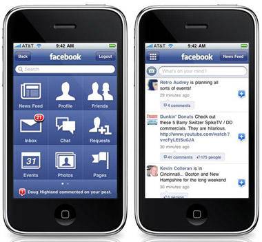 今天,Facebook 的默认界面是信息流(News Feed)。但如果你用过早期的 Facebook App,一定会对这个九宫格界面记忆犹新(人人网也曾经使用过这个布局)。它简直就是一个 iPhone 主屏的翻版。