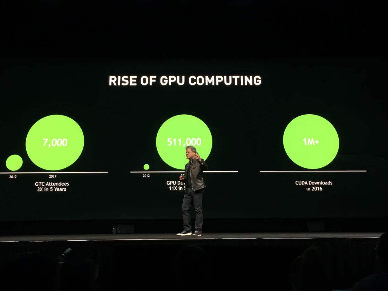 数据显示,GTC参加人数在五年内上升了三倍,今年达到7000人,GPU开发人员的同时增长了11倍,达到了50多万,CUDA驱动程序和SDK的下载量也超过了百万。