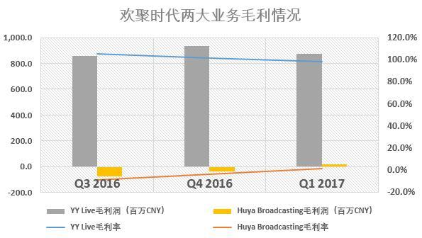 毛利情况:YY直播毛利超过100%