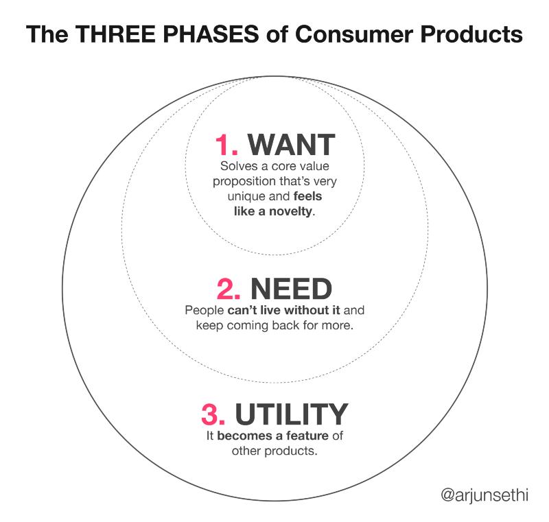 一个产品必然要经历三个阶段:1. WANT;2. NEED;3. UTILITY。