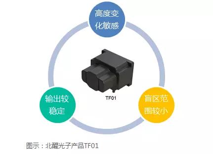 北醒光子目前主要产品为TF01,其具备三个特点:对高度改变的敏感性、稳定的输出能力和较小的范围盲区。目前多数植保无人机采取的气压感应定高方式只能做到等高飞行,而北醒光子无人机飞控能够根据TF01发射的红外连续调频波触及到的植物顶部高度来调整自身飞行高度,此时,无人机的飞行高度就不再是相对于地面的高度,而是相对于农作度生长的最高点。TF01的最远探测距离达10米,精度达厘米级别,检测角度可定制,扫描频率为500Hz,按照IP65级别防护设计,防尘防水抗腐蚀效果较好,目前正在逐步应用于植保领域。