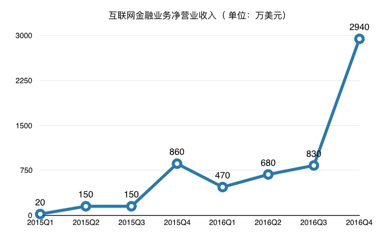 2016年,人人 互联网金融收入为 2940 万美元,相比同期 860 万美元,增长 242 %,贡献 46.4%营收。财报数据显示。债权余额为 3.021 亿美元,同期为 1.597 亿美元。