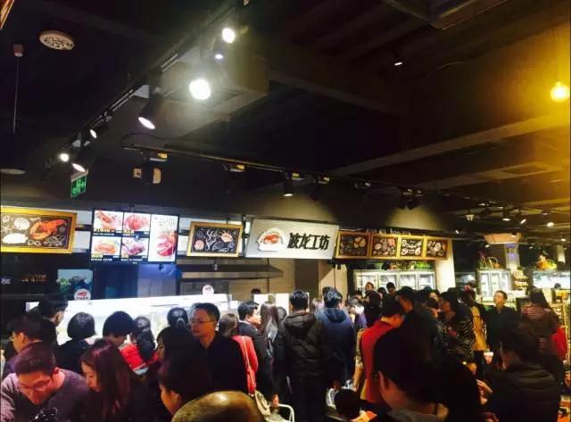 爆款+ 自有 SKU:第一家超级物种餐饮部分SKU为8个,都是经过内部的合伙人计划(后面会有介绍)竞争而出,每个SKU都为永辉自有品牌,并且属于不同合伙人,单独结算。以鲑鱼工坊为例,日均能卖出30头三文鱼,差不多三天就能卖掉同等面积日料店一年的三文鱼数。而波龙工坊也是出现爆款现象,虽然仅占50平米左右,每日却可卖出400多头龙虾,预计日营业额超过8万元,十分厉害。