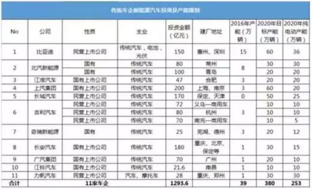 截止2016年底,已有14家新兴车企的投资规划和产能规划,截止到2020年,将会有增加229万辆的新能源车辆的产能,总投资金额为1060亿元。