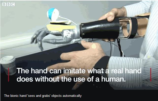 “以往,许多截肢者会拿自己健康的手臂或腿作参照,假肢相较而言动作迟缓,戴上之后又显得非常笨重。现在就不一样了,我们开发出了这种‘洞察力敏锐’的仿生手,不需要经过思考它就会自觉自动的帮你取物,这可是百年来的头一遭哇!”