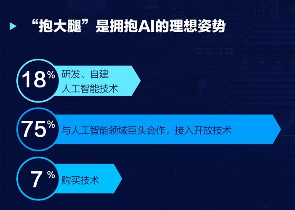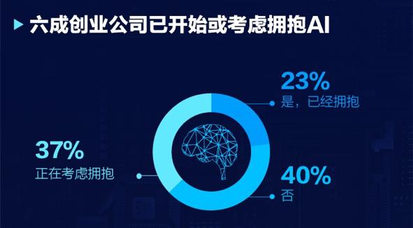 在这样的背景下,不少创业者会选择巨头合作。调查中,23%的中小创业者已经开始拥抱人工智能技术,37%的中小创业者正在考虑拥抱人工智能技术。