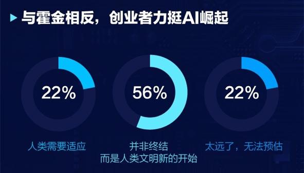不过,受访者们对此持乐观态度。数据说明,56%的受访者认为人工智能并非是终结,而是人类文明新的开始;22%的受访者认为人类需要适应,22%的受访者认为这离人类还很遥远,无法预估。