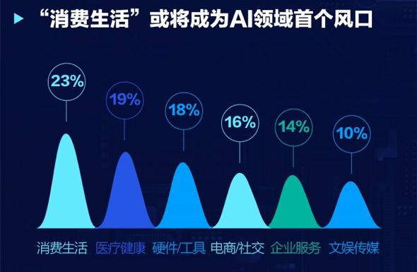 目前,人工智能正加速渗入人类生活的方方面面。而对于人工智能未来创造的第一个风口,23%的中小创业者认为会出现在消费生活领域。比如已经快速发展的自动驾驶技术,已经有很明确的商业路径,只需要沿着往下走。