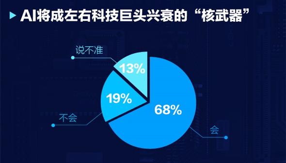 对此,68%中小创业者赞同,认为未来人工智能未来会成为左右科技巨头兴衰的“核武器”。