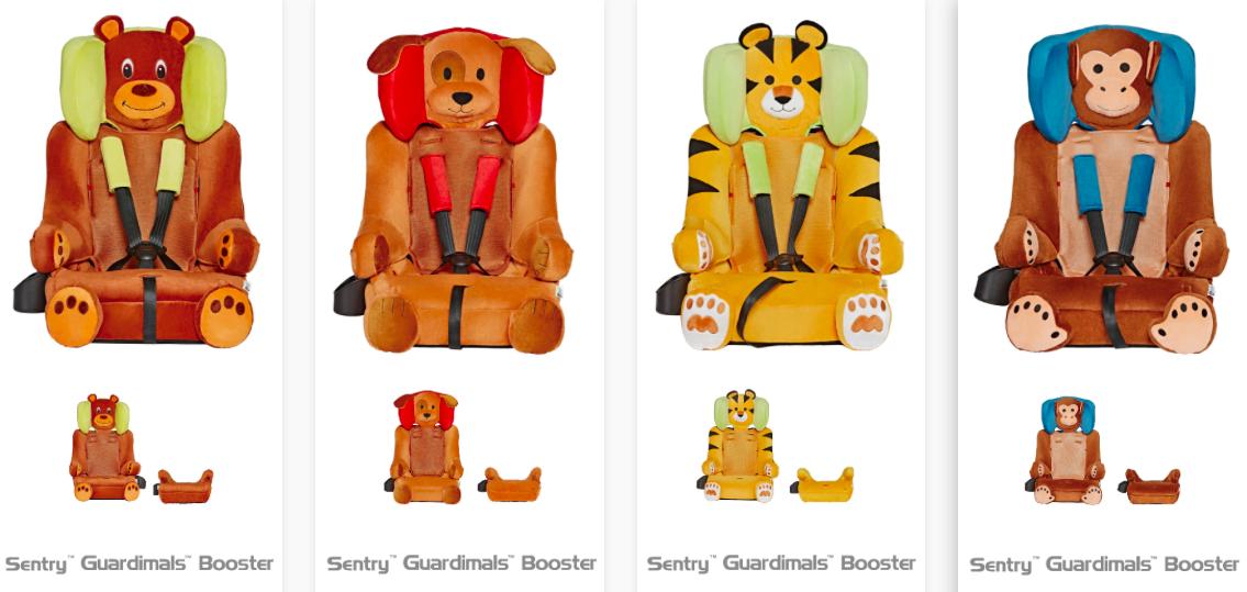 买单的人是家长,使用者却是孩子。因此SentryTM从儿童的角度来打造差异化,具体体现在座椅形象和舒适性上。首先在外观上,设计成孩子熟悉的卡通毛绒玩具动物形象,以此来吸引宝宝的注意力。其GuardimalsTM 动物卫士系列,有熊、狗、老虎、猴子四款形象;材料上,接触孩子肌肤的表面采用水晶短毛绒面料,主要部位填充了大面积厚度10mm以上的3D PU乳胶,提高舒适度。