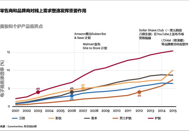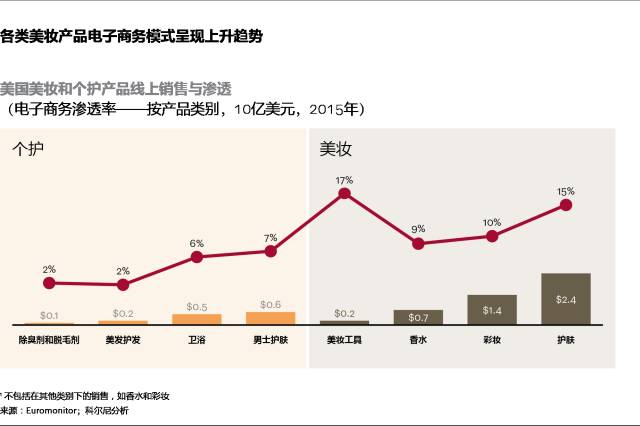 美国一项针对美妆和个护产品电子商务增长的分析显示,线上销售的加速增长虽然看似由消费者需求推动,但实际上是零售商和品牌商日趋复杂的供应端活动的产物,因为这些零售商和品牌商能够建立数字化能力,克服数字化渠道的壁垒。