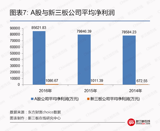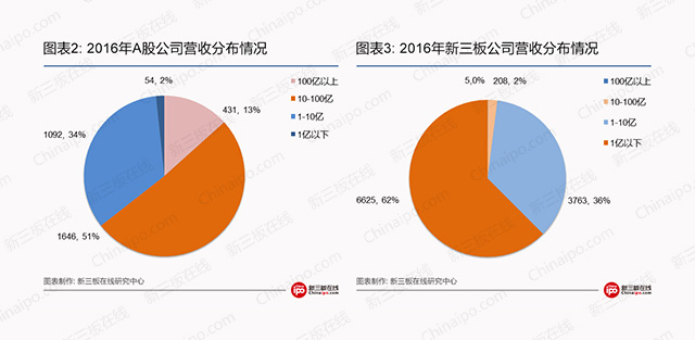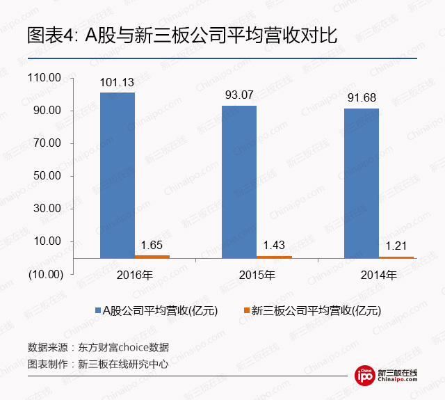 2016年新三板公司平均营收为1.65亿元,两年平均复合增长率高于15%;而同期A股公司平均营收的两年复合增长率为5%左右,仅为新三板的三分之一。