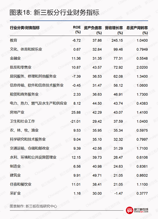 (1)新三板房地产业表现高于行业平均水平