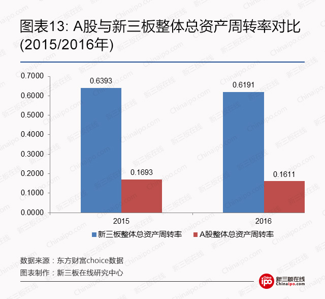 因此,从总资产周转率的下降幅度和绝对值相比,新三板整体都优于A股。