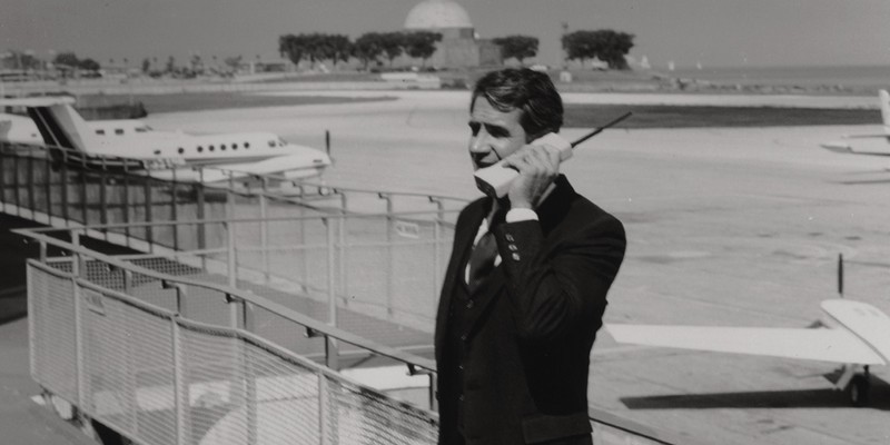正在使用“大哥大(Motorola DynaTAC 8000X)”的商人