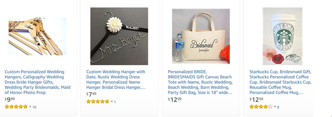 逛一下亚马逊会发现,上面的东西虽然价格便宜,但有些确实粗糙。买木质衣架送给新婚夫妇,这事儿还真不是一般人能干得出来的。而且网站上类似的产品太多了,很难让人认为这真是纯手工制作的。便宜固然好,但是在婚礼类的用品上,如果太便宜反而很难拿得出手。