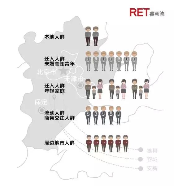 新区人口规模可达500-600万人,类型多元。前期以来自于北京的产业迁入人口和本地人群为主,中远期内将以“科技之城”、“创新之城”的姿态在全国,甚至世界范围内吸引人才,成为具备高活力的移民城市,并衍生出大量商务型流动人口。
