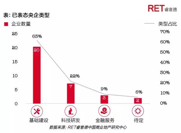 雄安新区将实现一种以强大的行政力量为支撑的产业落地模式。国家级战略布局的规格,决定着雄安的崛起,将不同于以往任何一个城市新区。以创新为核心的规划,首先是在模式上的创新,借行政手段快速实现基建和科研力量的导入,为高新技术产业的落地夯实基础。未来园区将以高附加值服务业和高附加值制造业为主导,逐步发展成中国最具活力的创新区。新区规划发布两周内,已有32家央企表态将以行动支持,其中基建、科研、金融服务机构占主导力量。