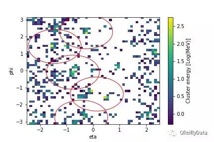 图17 作为卷积神经网络的输入的模拟图像,其来自于模拟LHC检测器的“量热计”部分的信号。模拟器是由仿真包Pythia和Delphes生成的。图片由Wahid Bhimji友情提供