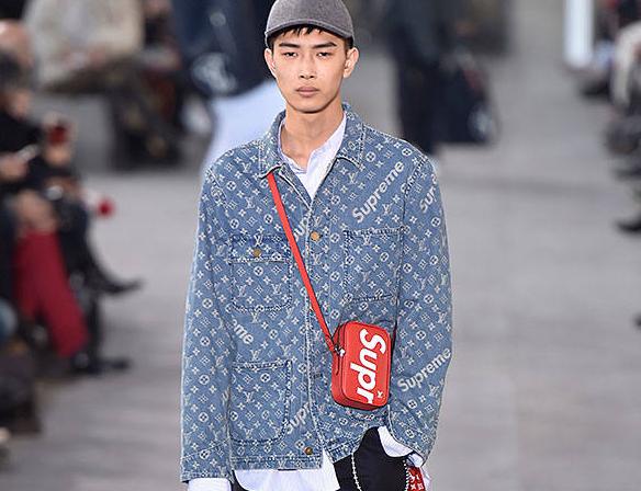 Gucci今年正流行的各种夸张花朵的包包,有种红配绿东北大棉袄的感觉,花哨的让人想起某宝上的山寨品,但依然受到消费者的欢迎。今年2月,LV与Supreme的合作上系列,也能看到LV重新将Logo放在了衣服上,美感似乎谈不上,但是绝对够吸引眼球。