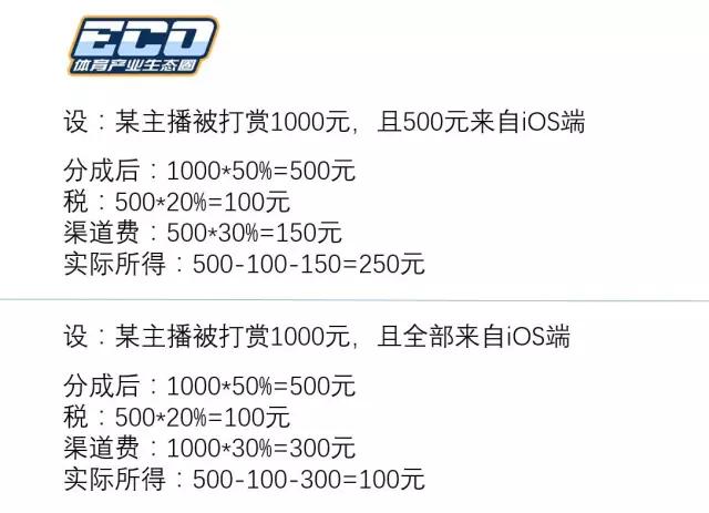 我们不妨来粗略计算一下,如果某主流主播在一个月被打赏金额为1000元,他究竟能到手多少呢?