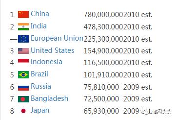 中国确实是劳动力的超级巨无霸。中国人口是印度的1.1倍(中国13.4亿,印度12.1亿),可是劳动力中国是印度的1.7倍。 中国人口是美国的4.2倍,劳动力确是美国的5倍。