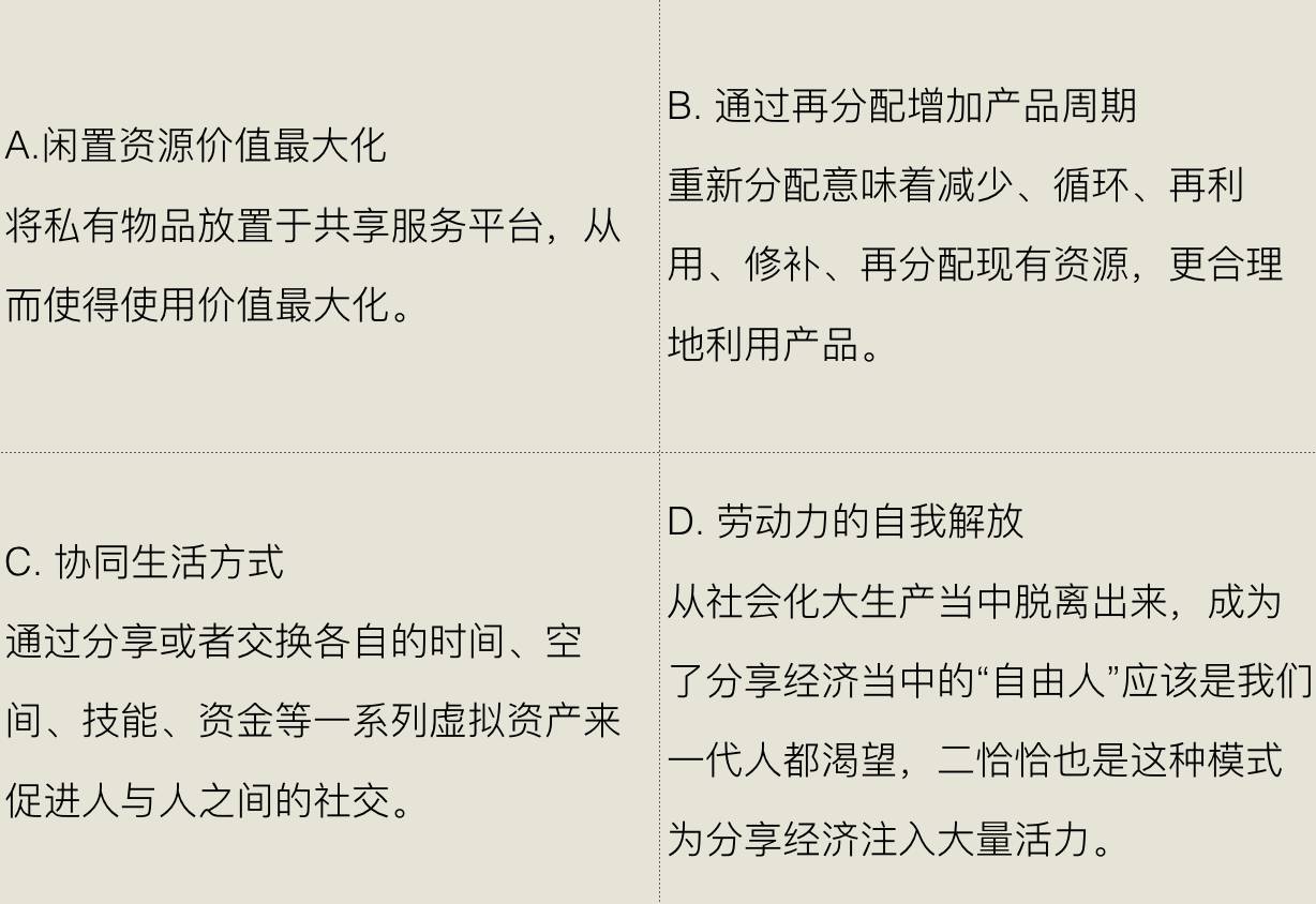 “共享经济”,其实是弱化物品所有权,强化物品使用权的一种行为,将(闲置的)私有财产或产能的短期使用权通过互联网交易平台出售,来为资产所有者获利的商业模式。本质上也是为了从中获取利益,所以的的确确是能够在社会上带动一定经济效益的,这也就很能够解释为什么各大资本都在“共享经济”里逐鹿。