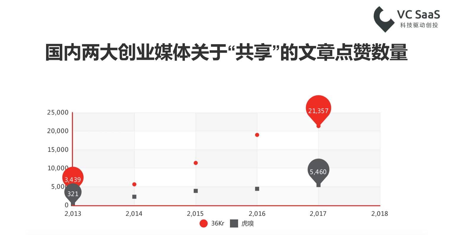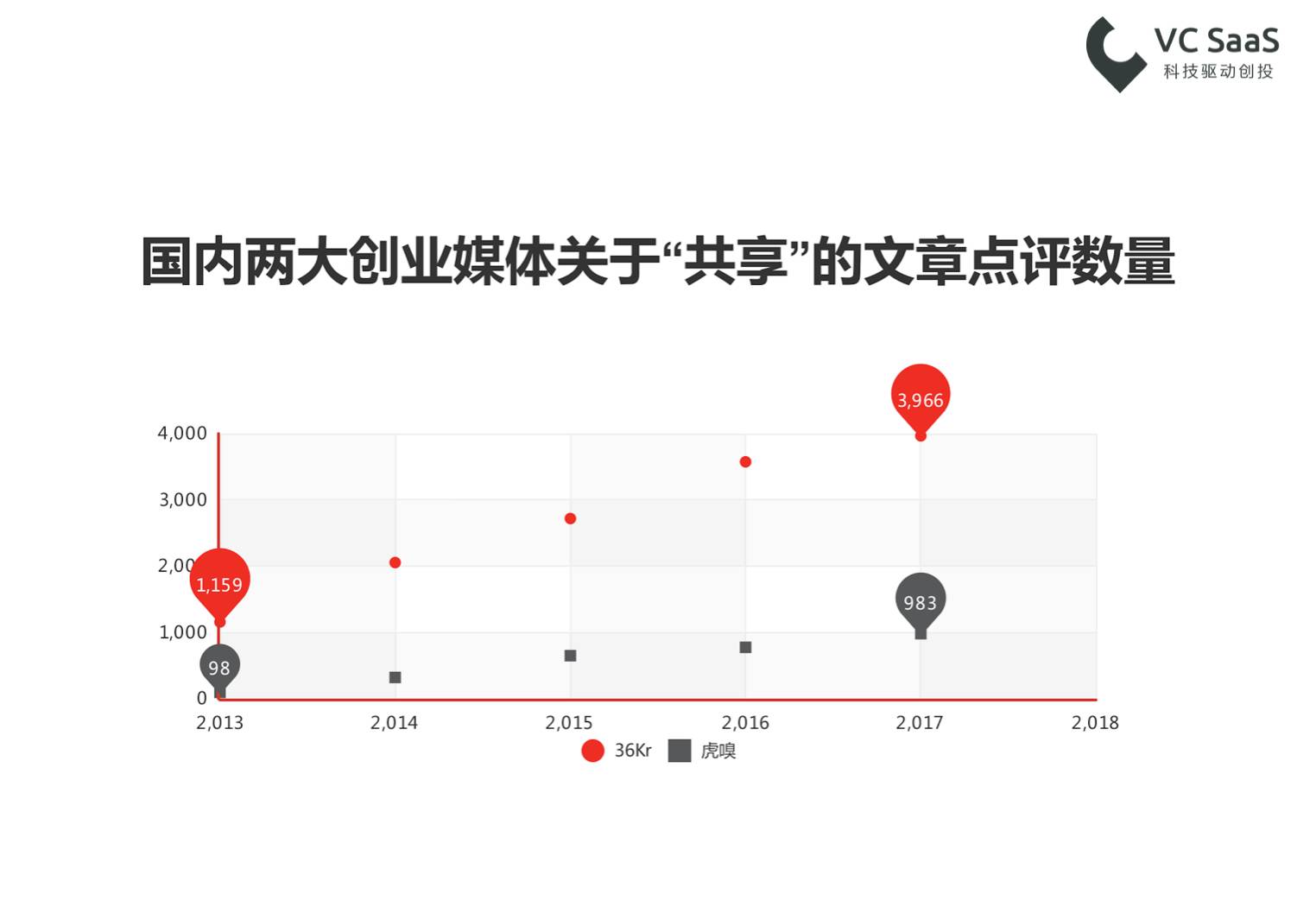 VC Insights搜集了国内两大创业媒体从2013年至2017年5月20日的文章数据,并发现36Kr从2013年至今共有4930篇关于“共享”的文章,而虎嗅网从2013年至今共有2730篇关于“共享”的文章。并且根据以上文章的点评数量和点赞数量进行了以下对比。