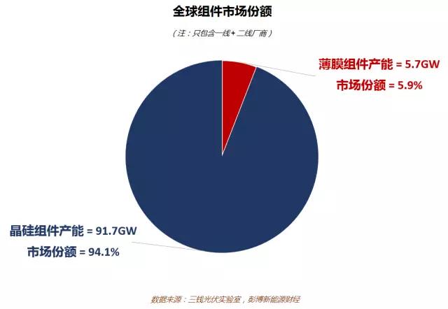 光伏的产业链从上至下大致可以分为晶硅原料→硅片→电池→组件→电站这么几块,其中组件又分为薄膜组件和晶硅组件。目前,从产能这个统计口径看的话,晶硅组件的市场份额超过90%,占据绝对的主导。