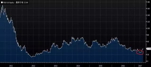 FSLR正是属于薄膜组件这一环节,公司在2016年拥有3.2GW的产能,不仅是美国组件厂商里最大的,也是薄膜组件厂商里最大的。