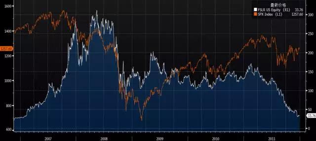 2008年5月16日,FSLR的市值达到巅峰的248亿美元,估值是当年收入的20倍(下图白色线是FSLR股价,时间为2006年11月 - 2011年12月)。