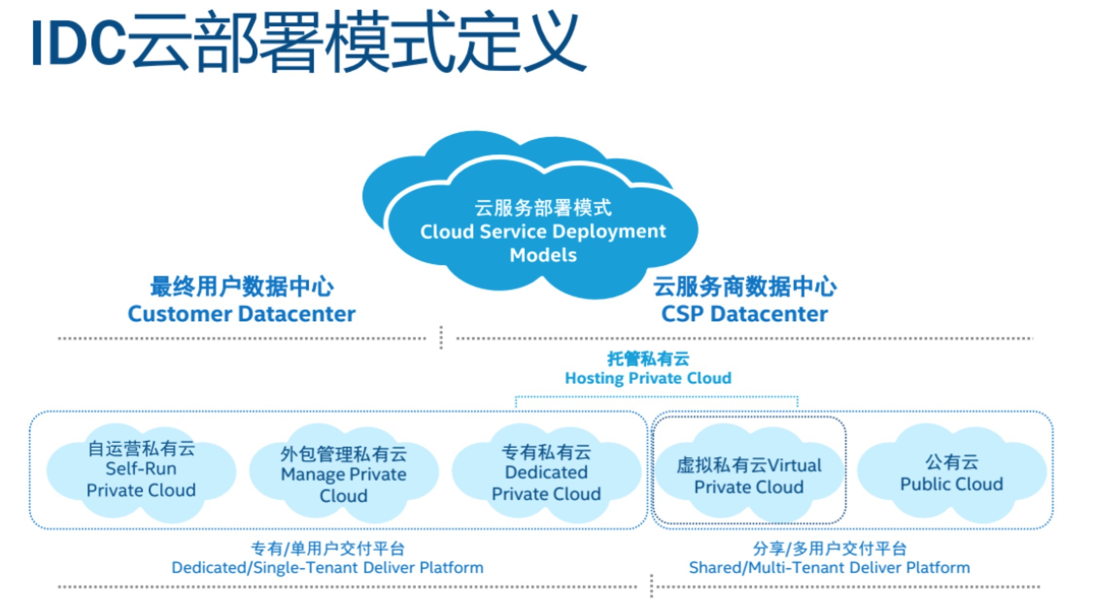 虽然目前行业内对于混合云还没有一个很好的定义,但IDC在最近发布的报告中对云部署模式从新进行了一次定义,包含两种或以上模式的即可被称为混合云:
