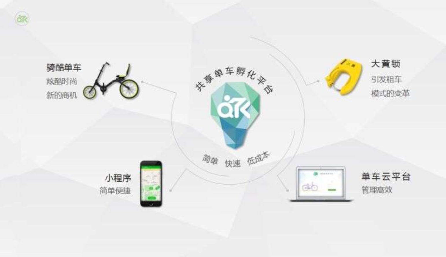 我近期接触的“骑酷单车”是一个“车+锁+微信小程序+单车云平台”的一站式共享单车孵化平台,该平台通过将单车、智能的车锁、共享单车云平台和一个微信小程序结合起来,以使渠道商简单、快速、低成本的上线共享单车项目。