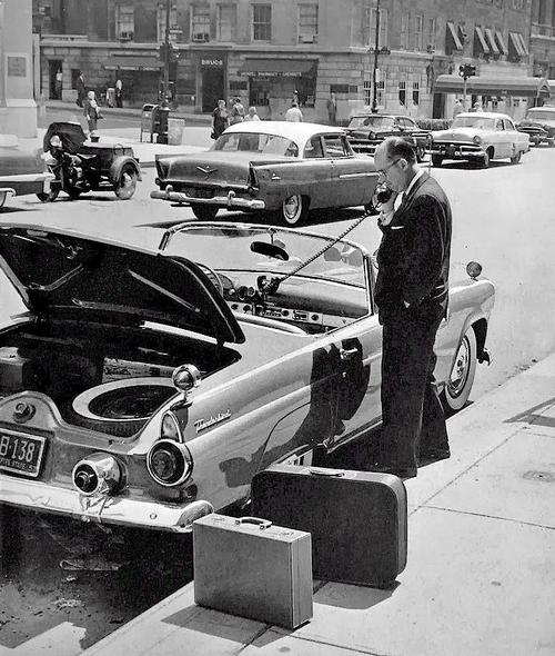 第一部车载电话出现在1940年代末,在许多国家的的很多城市都得到了部署。不过车载电话存在两个根本问题:一是缺乏将它们从填满车身那么大的东西瘦身为可随身携带的路线图,二是没有规划频谱使用,从而可以支持在一座城市内同时拨打数百万而不是几十个电话的路线图。这些因素结合起来也意味着产品是极其昂贵的。第一个问题的解决需要整个计算机革命的发生(当时还没有开始),而第二个问题的解决需要移动电话本身的理论突破以及后续围绕着多路复用(TDMA时分多址复用和CDMA码分多址复用)的理论突破。