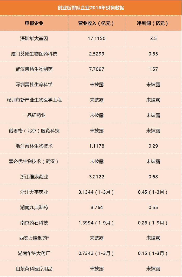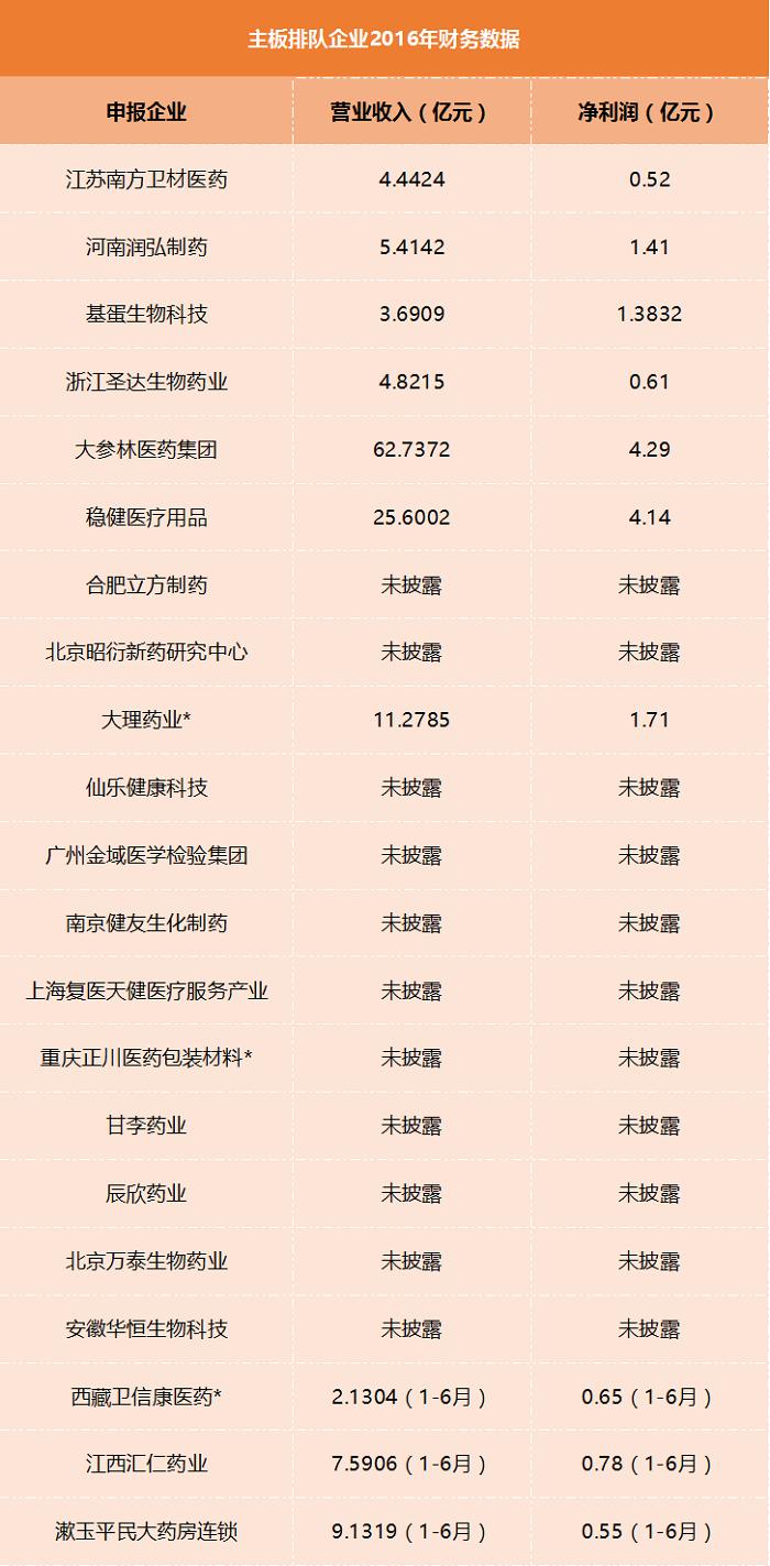 其中2016年营收排名前5的企业包括大参林医药集团、稳健医疗用品、深圳华大基因、大理药业、湖北省宏源药业科技;2016年净利润排名前5的企业有大参林医药集团、稳健医疗用品、深圳华大基因、大理药业、武汉海特生物制药。几家企业的业务概况如下: