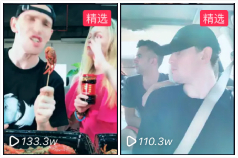 以嘿老外过100万的抖音作品中,其中两个为例,一个是我们的老外柯桑德和MJ的在出租车拍的,另外一个是柯桑德和温碧涵,用小龙虾配合着周星驰的红烧鸡翅的音乐拍的视频。表面上看,抖音只需要跟随音乐节奏,做出扭脖子、摆动手臂等肢体动作。实际上,做出这些动作并不难。但是设计好内容形式,配合音乐节奏,再做动作难度就很大了。