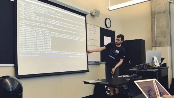 “Moogfest音乐科技节”期间,谷歌工程师Colin Raffel在一次Magenta研讨会上。[图片来自:John Paul Titlow]