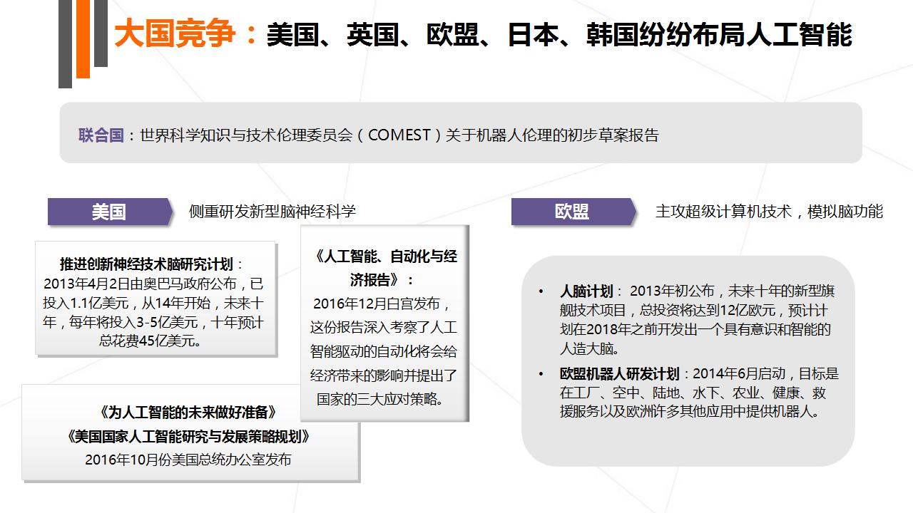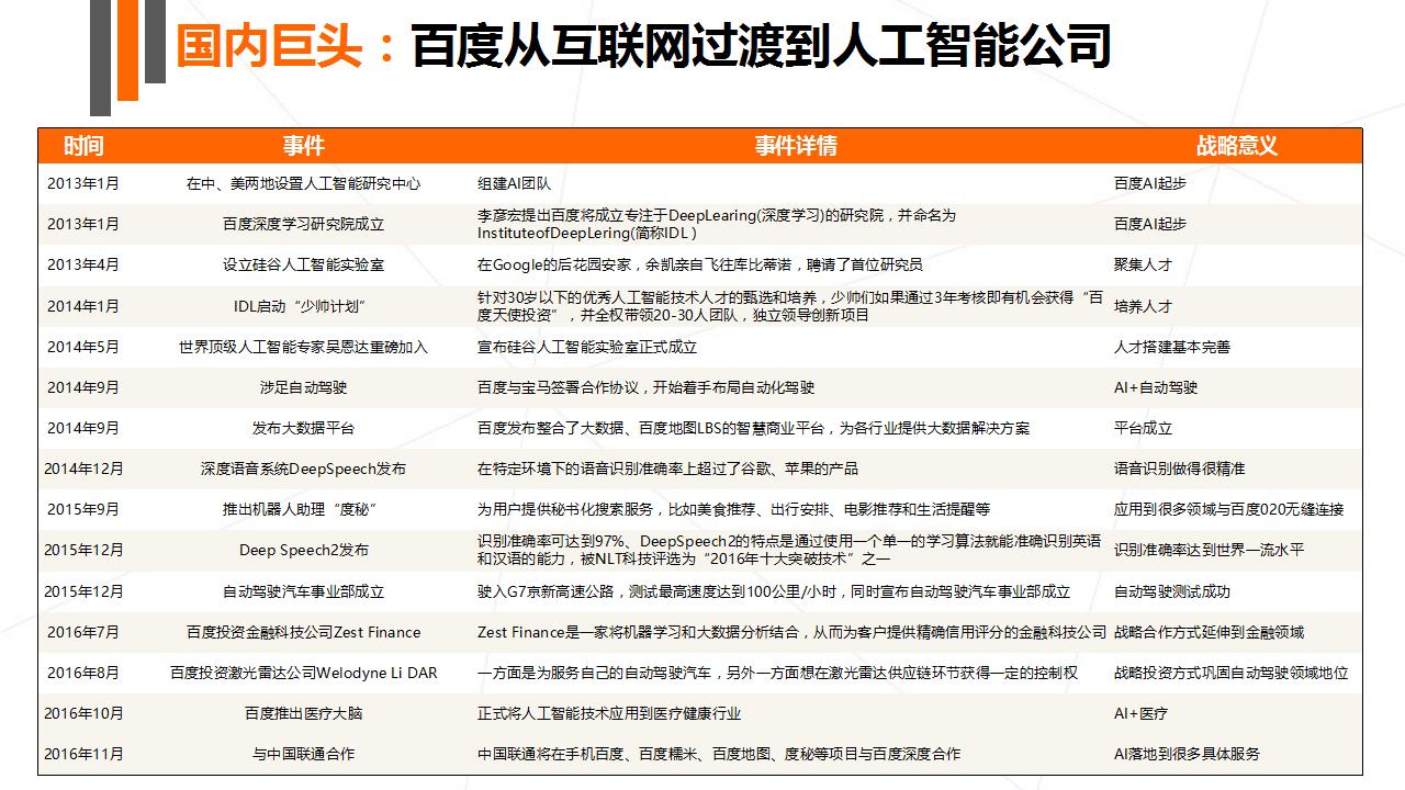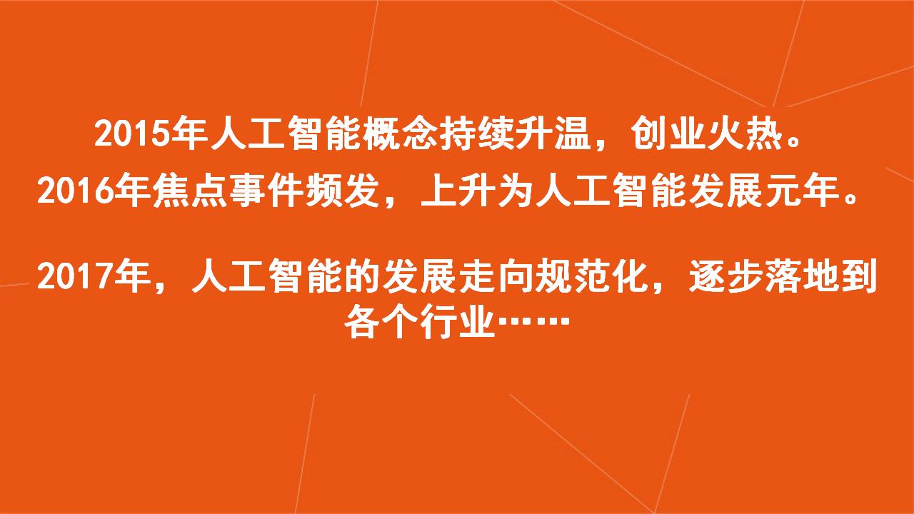 本次报告主要讲述了人工智能的崛起、产业结构图谱、全球大公司布局以及最为重要的创投数据盘点四大部分。