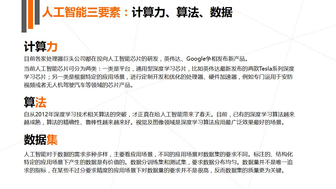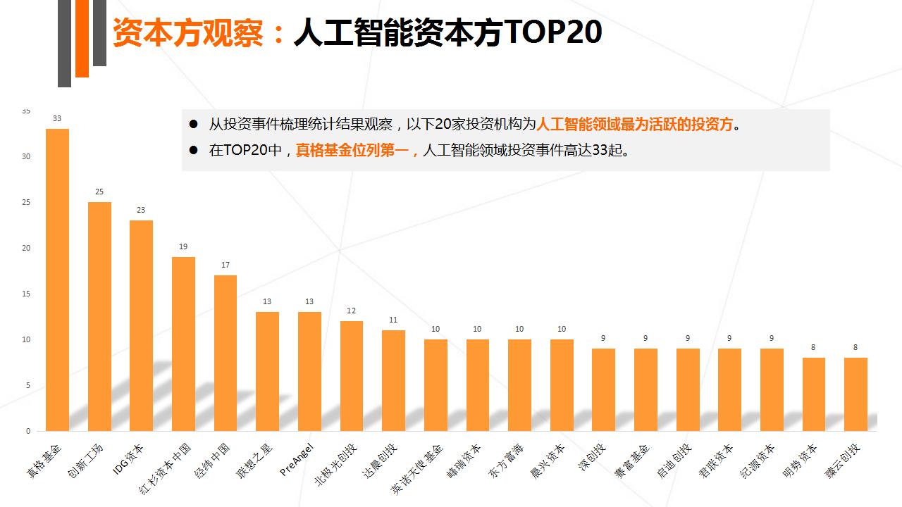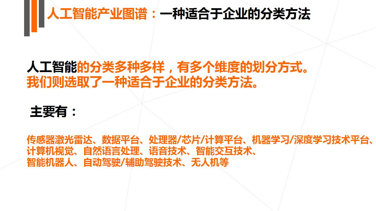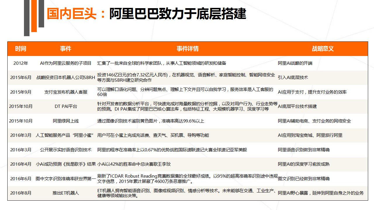 本次报告主要讲述了人工智能的崛起、产业结构图谱、全球大公司布局以及最为重要的创投数据盘点四大部分。