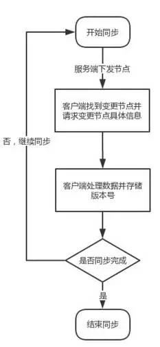 客户端请求新增节点的具体信息。请求具体信息成功后,再进行本地数据库的插入 / 更新 / 删除处理,保证同步流程的原子性。