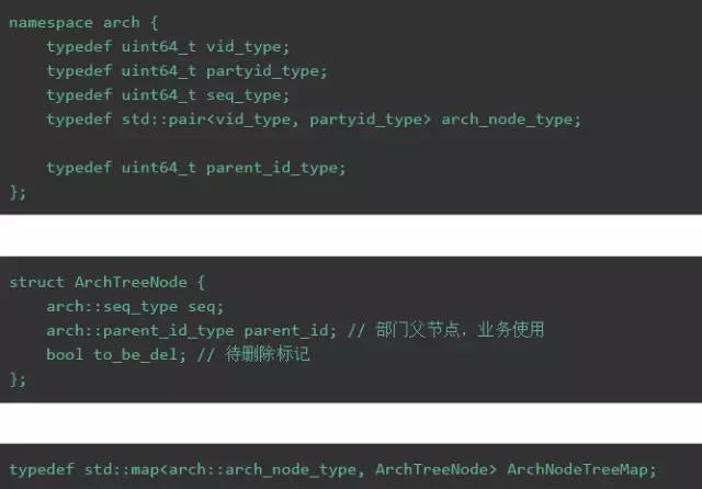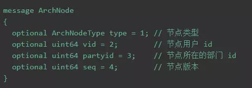 其中,seq 是自增的值,可以理解成版本号。每次组织架构的节点有更新,服务端增加相应节点的 seq 值。客户端通过一个旧的 seq 向服务器请求,服务端返回这个 seq 和 最新的 seq 之间所有的变更给客户端,完成增量更新。