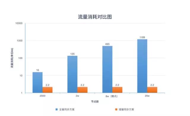 优化后,在腾讯域下,每次增量同步流量消耗仅为全量同步方案的 0.4%,且企业越大优化效果越明显。