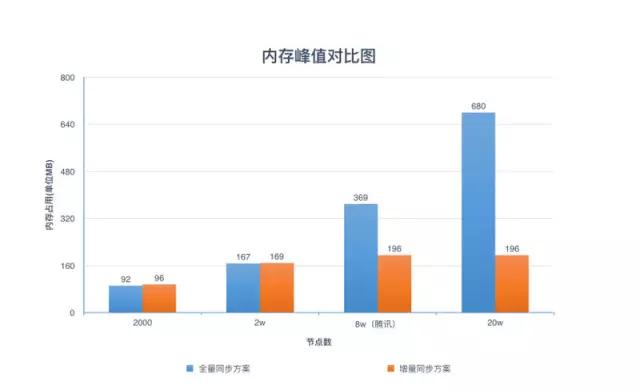 优化后,在腾讯域下,增量同步方案的 App 总内存使用仅为全量同步方案的 53.1%,且企业越大优化效果越明显。并且不论架构的总节点数有多少,增量同步方案都能将完整架构同步下来,达到了预期的效果。