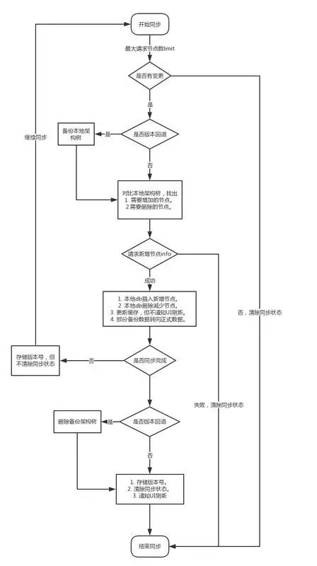 而版本号回退这个标记,仅仅在同步的首次会随着新的版本号而下发。在完整架构同步期间,客户端需要将该标记缓存,并且跟着版本号一起存在数据库中。在完整架构同步结束后,需要根据是否版本号回退来决定删除掉数据库中的待删除节点。