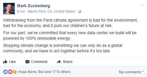 就Facebook来说,我们所有的数据中心仍将100%的使用可再生能源,我们仍需针对气候变化采取全球性行动。
