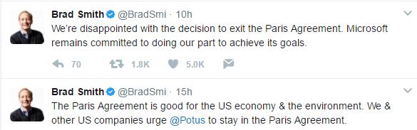 微软主席布拉德·史密斯(Brad Smith)大概也是这个态度,表示失望,并说微软会为抑制气候变化做好自己的工作。