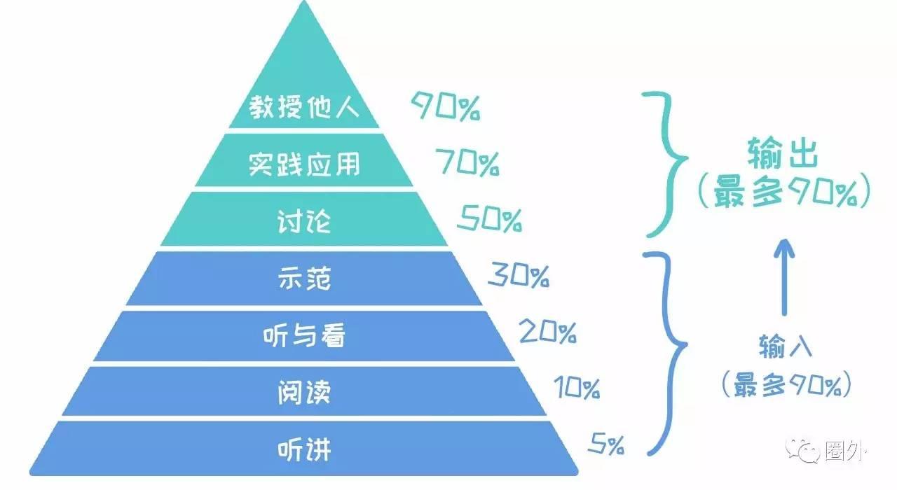 我们都知道一个学习金字塔理论,听讲的场景下,只能留存5%,但如果能够实践运用,就可以掌握75%,当然,如果能够教,则能够掌握90%。