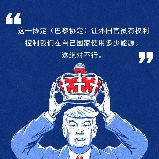 我是匹兹堡市人民选举出的,不是被巴黎人选出的,我承诺只要这个协定不能服务于美国的利益,我将会退出或者重新协商任何协定。(重申特朗普的原话)